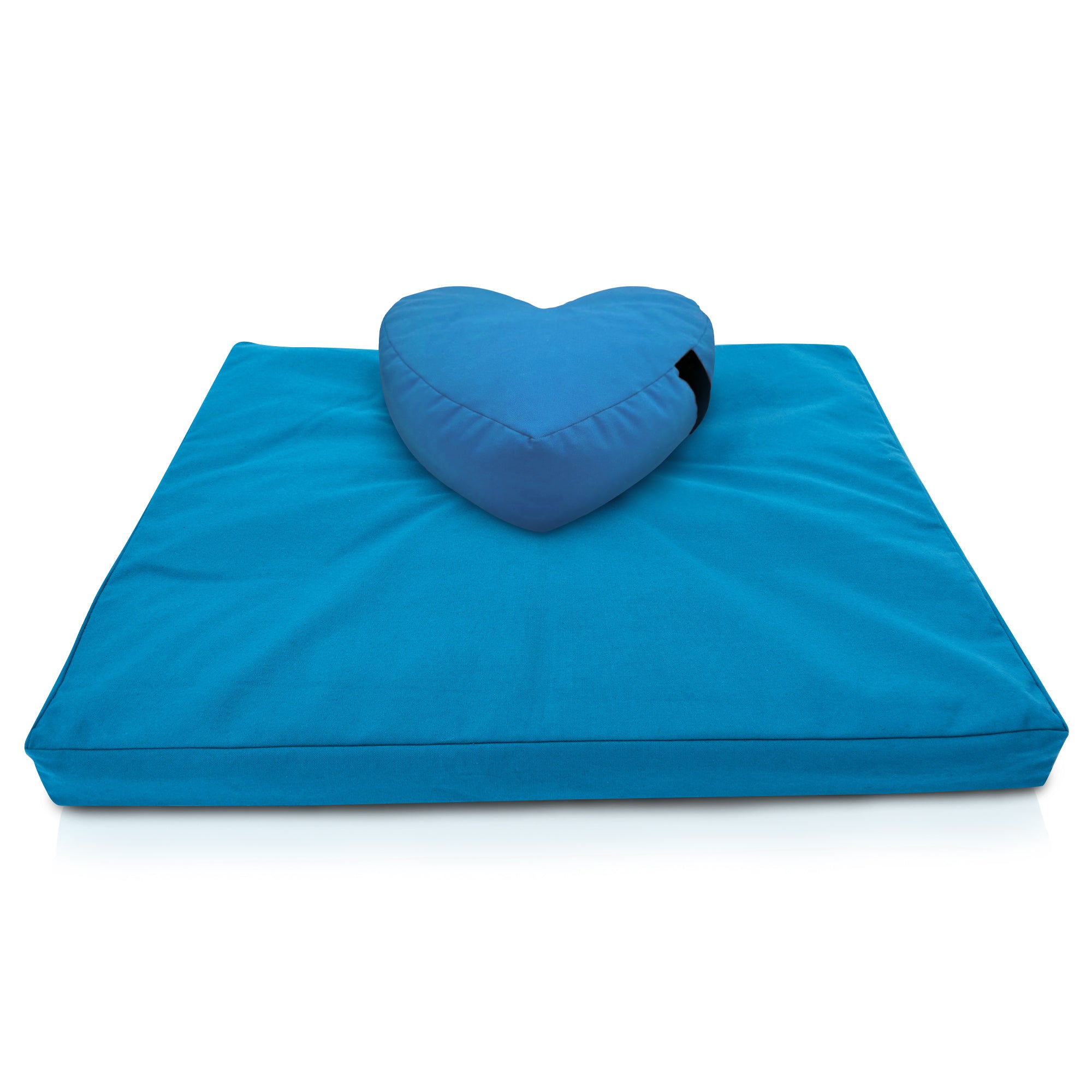 This meditation cushion set includes a zafu meditation cushion and a zabuton meditation cushion designed to work together for proper posture and long-lasting comfort. The zafu supports the spine and hips, while the zabuton cushions knees, ankles, and legs from hard or cold floors.
