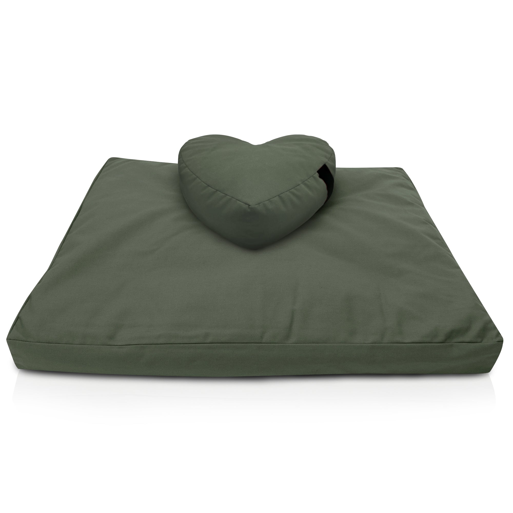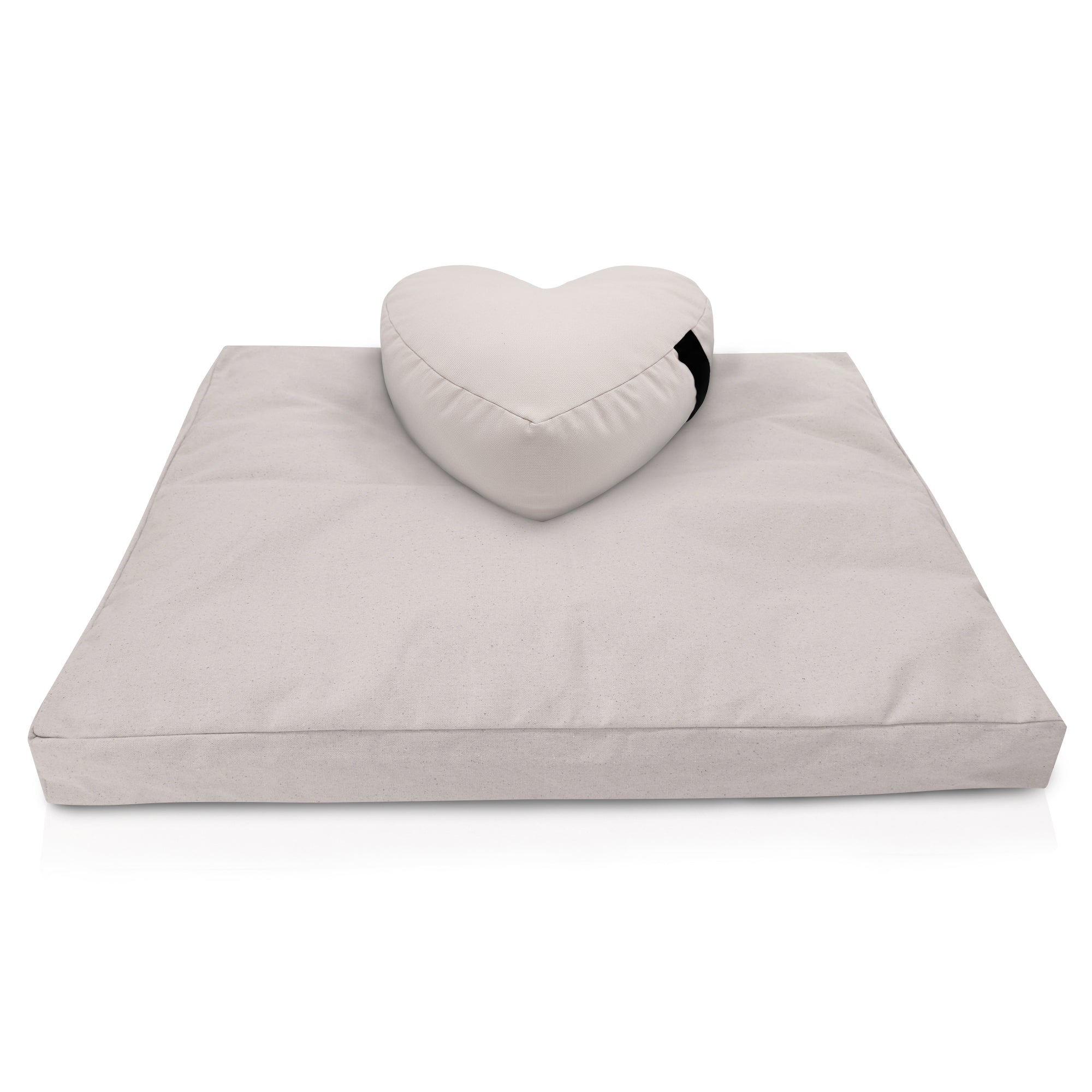 The zafu is filled with organic buckwheat hulls for firm, adjustable support. The zabuton is filled with cotton batting to provide insulation and stability. Both cushions feature removable, zippered covers for easy care.